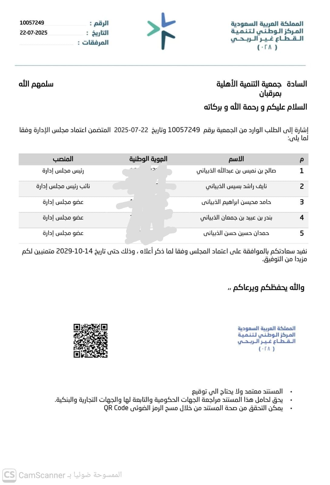 قائمة باسماء مجلس الادارة والمدة المتاحة